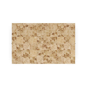 Crafted from exotic mappa burl veneers, intricately pieced to showcase its highly figured, swirling grain. A Brazen bronze leaf finish underneath adds warm contrast and a soft glow.