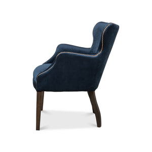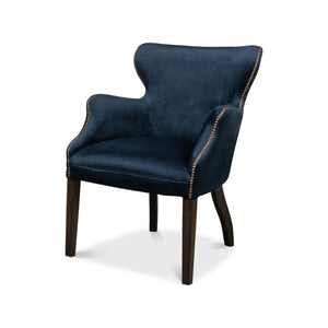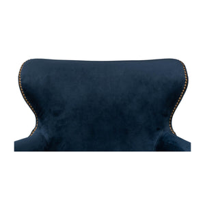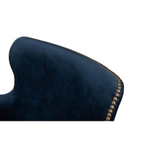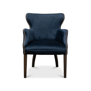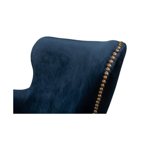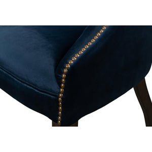 Classic Blue Velvet Armchair, the rich deep blue velvet blends perfectly with the polished finish to the legs and the brass nailhead trim details.