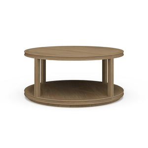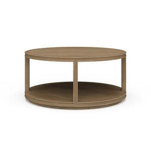 Elevate your living space with this Contemporary Round Coffee Table in a serene Sandbar finish. Measuring 39" x 39" x 18", this elegant piece combines organic minimalist design with rustic charm, making it the perfect centerpiece for any room.