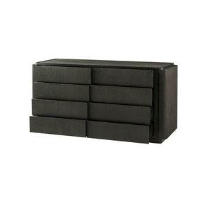 Dark Oak Modern Dresser, with a wire-brushed white oak in our dark Charcoal finish. This dresser is horizontally configured enabling it to not be an intrusive piece in the space and for the convenience of all who use it.