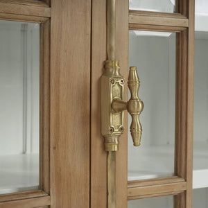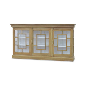 A modern homage to 18th-century European design, the French Provincial Fruitwood Credenza brings refined symmetry and architectural elegance to contemporary interiors. Framed in a fruitwood finish, its glass-paneled doors feature geometric fretwork in a stylized pattern evocative of classic French motifs. Behind each panel, a true white painted interior offers contrast and brightness, perfect for showcasing curated collections or fine tableware.