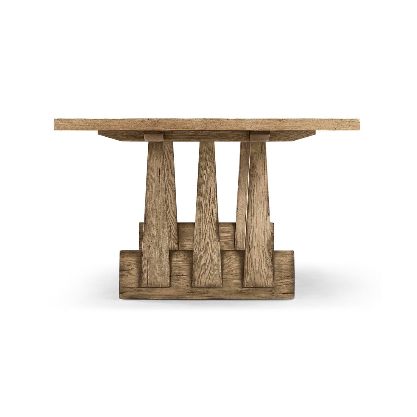Finished in our distinctive Faded Oak, the table strikes a balance between rustic texture and refined form. Measuring 124 inches in length, it comfortably seats eight, ideal for both daily family dining and formal gatherings.