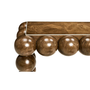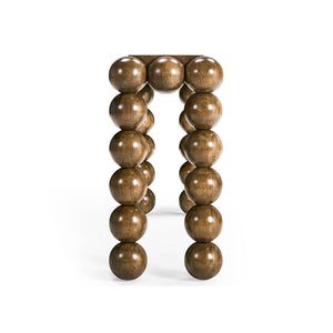 With its captivating spheres and luxurious finish, it becomes the centerpiece that seamlessly combines modern elegance and sophistication. The table's solid wood-stacked orbs form a charismatic foundation that fuses art and functionality. These orbs create a unique and eye-catching leg and apron design that adds personality to the piece.