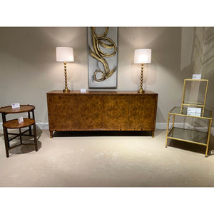 The Modern Burl Buffet Sideboard combines contemporary design with timeless craftsmanship. Featuring four burlwood doors framed by a beveled edge, this sideboard exudes understated elegance.