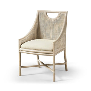 Discover the perfect blend of traditional charm and contemporary comfort with this Modern Coastal Dining Chair. Designed to enhance any dining space, this chair features a solid oak frame, beautifully adorned with classic cane detailing that adds a layer of natural beauty and texture.