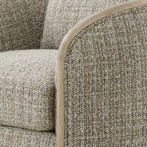 Elevate your living space with the Modern Swivel Chair, a refined blend of organic textures and contemporary design. Crafted with a beautifully curved oak frame and upholstered in a luxurious textural chenille fabric that provides a soft, inviting touch while maintaining a sophisticated aesthetic.