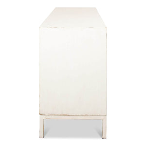 This beautiful piece is crafted in pine and has a whitewash-painted and antiqued finish.