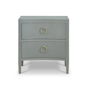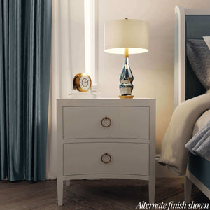 The subtle texture of the linen finish enhances its modern appeal, while the two spacious drawers provide ample storage for your bedside essentials. Adorned with chic gold ring pulls, this chest effortlessly combines functionality with refined elegance, making it a standout piece in any room.