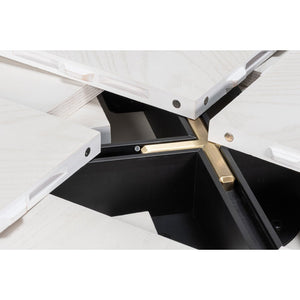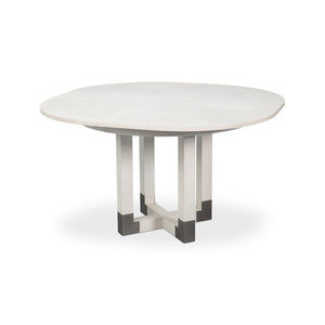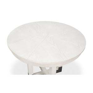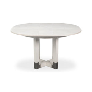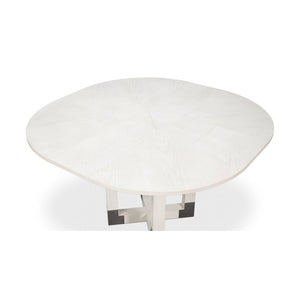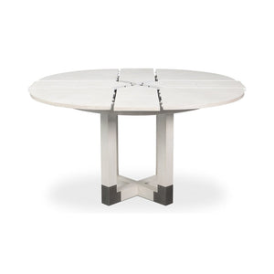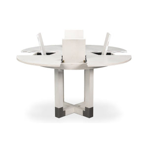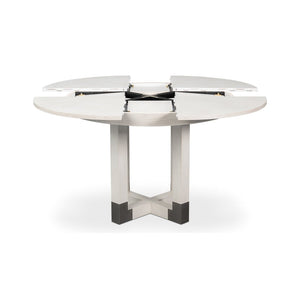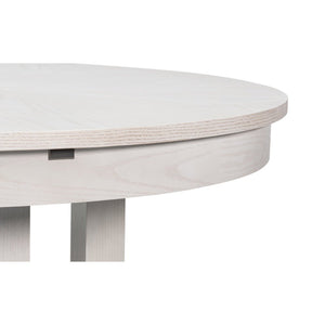 The Small White Jupe Dining Table is a refined centerpiece that blends the bold geometry of Art Deco with the timeless elegance of Mid-Century Modern design. Its round top showcases a striking radial veneer pattern in white ashwood, creating a captivating sense of depth and movement. Designed to adapt to your space, the table expands from a 42-inch closed diameter to a generous 56-inch open diameter, making it ideal for both intimate dinners and larger gatherings.