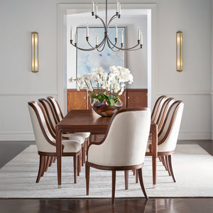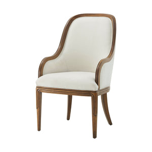 Recalling the elegance of the French Art Deco period, the Walnut Art Deco Upholstered Dining Armchair showcases swooping curves and visually striking forms. Crafted with a walnut finish, these armchairs embody timeless luxury. The refined wooden frame highlights its sculptural presence, while the Marshmallow performance fabric offers both comfort and durability.